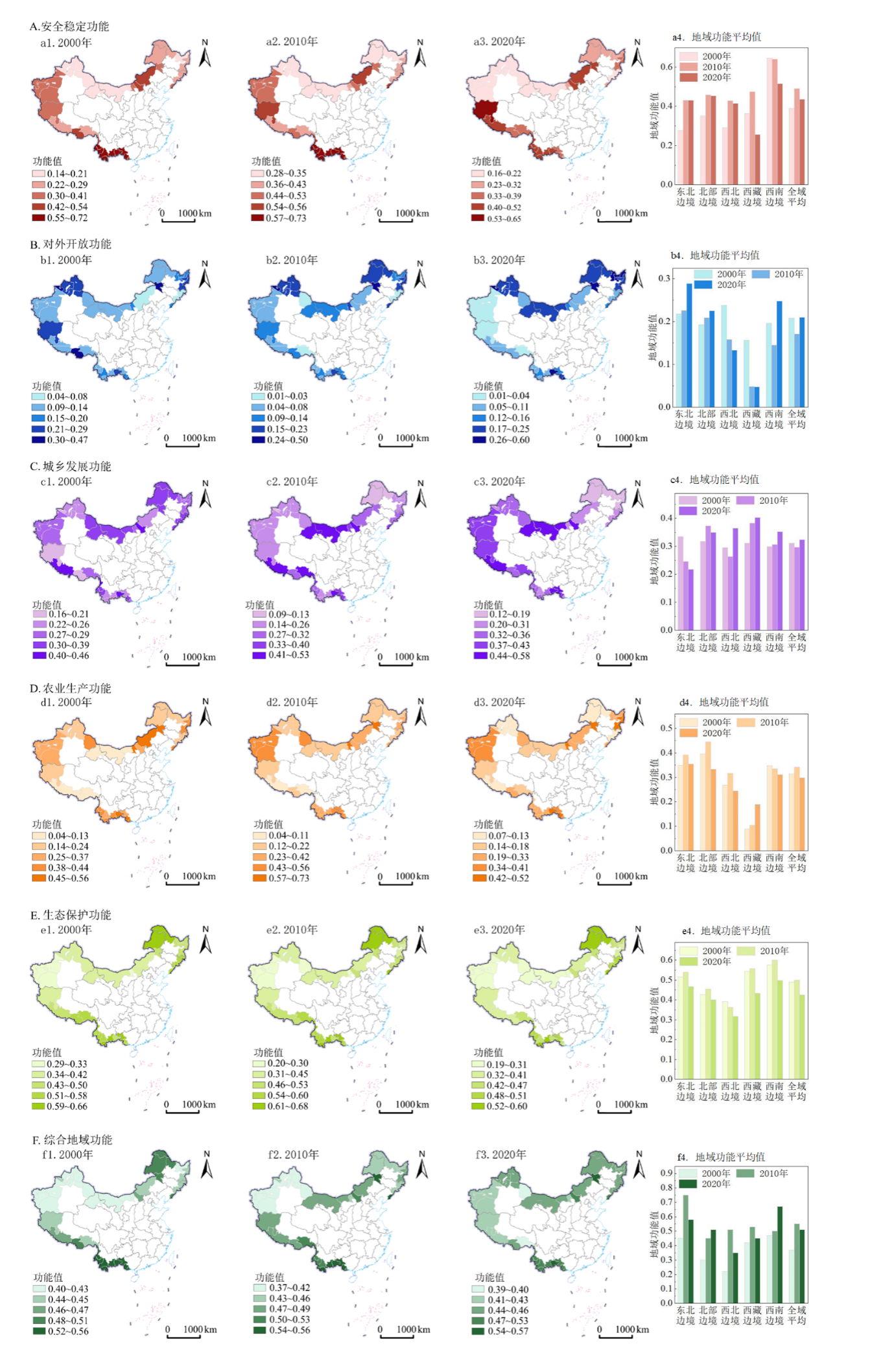 图2 2000—2020年中国边境地区地域功能空间格局