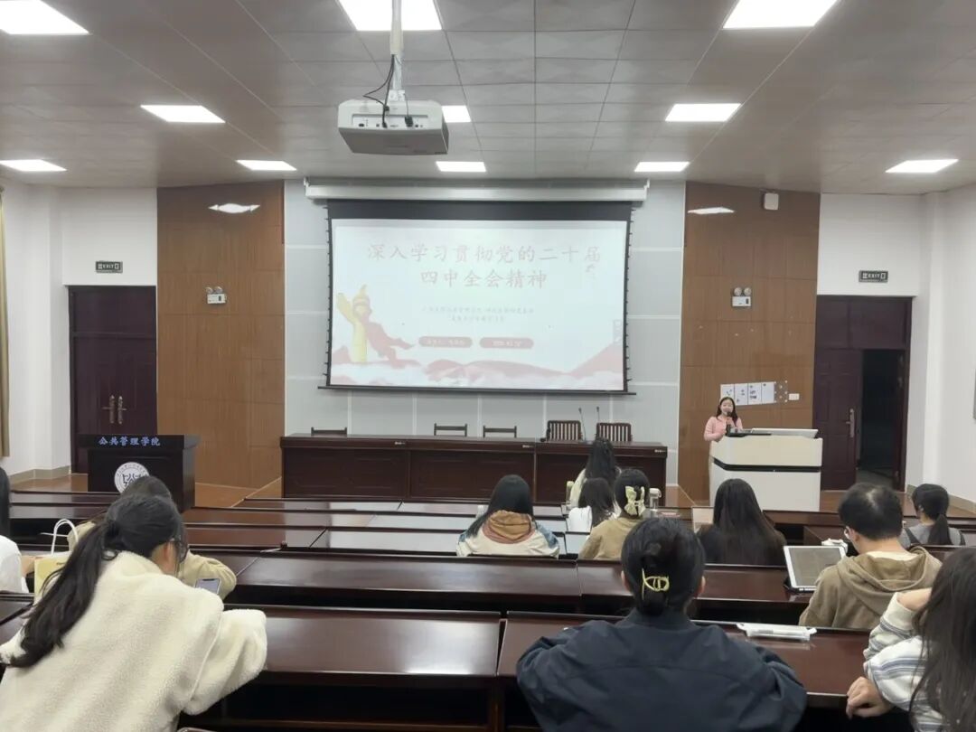 为深入学习贯彻党的二十届四中全会精神,引导支部党员准确把握新时代新征程党的使命任务,12月10日,H动漫 研究生第四党支部召开支部大会,举行“深入学习贯彻党的二十届四中全会精神”专题学习会。会议由支部书记韦程瑶同志主持,通过“领学+观映+研讨”三位一体的学习模式,推动精神内核入脑入心。